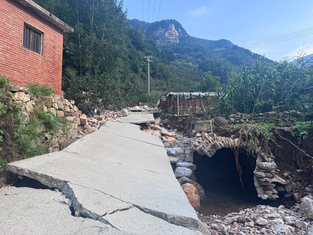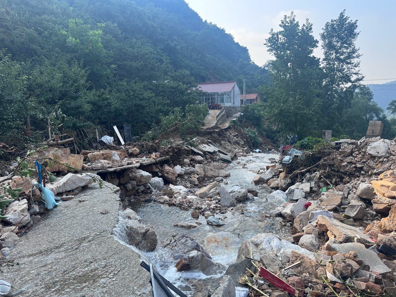 8月1日,五道河村到朱家沟村、响水湖村的道路已基本抢通,受强降雨的影响,个别路段还有断点,但工程机械车辆可以顺利通过。